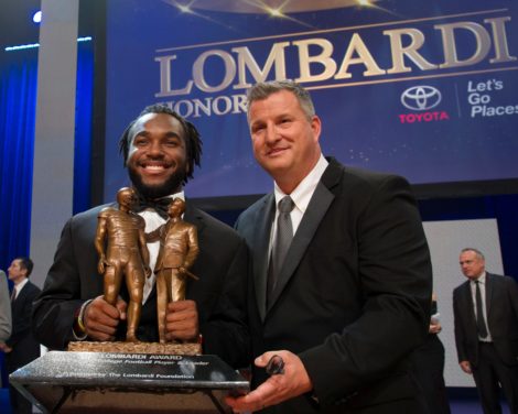 John Lombardi presenting the Lombardi Award to the the first recipient, 2018